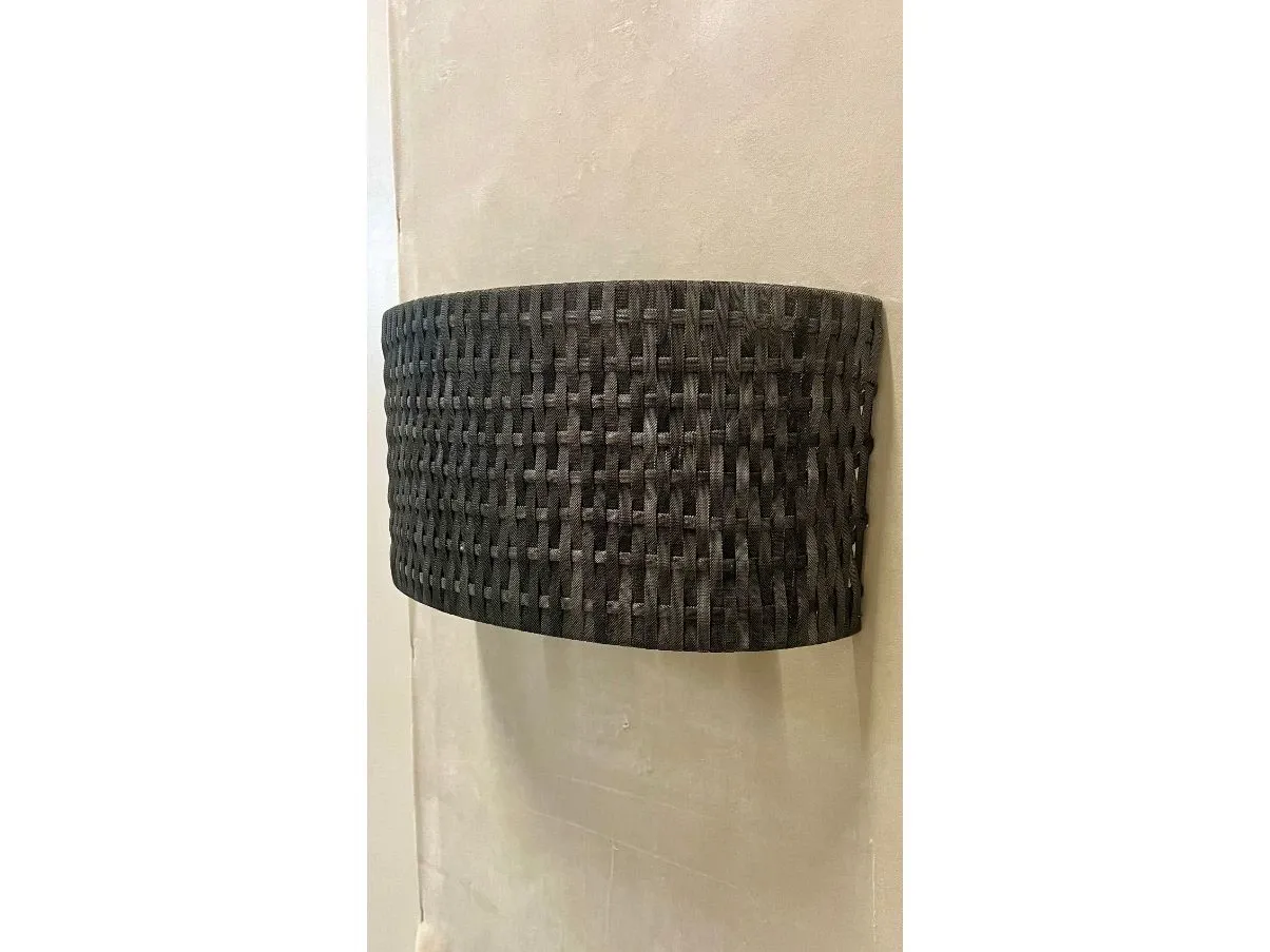 Applique a 2 luci con base realizzata con laccatura nera e paralume in maglia di metallo intrecciata a mano in finitura nichel nero, Patrizia Garganti. Quest’ applique è realizzata in materiale resistente e di ottima qualità, dalla forma curva con un design ricercato e originale, grazie alla lavorazione particolare, è ideale come elemento per illuminare gli spazi e creare un’ atmosfera accogliente