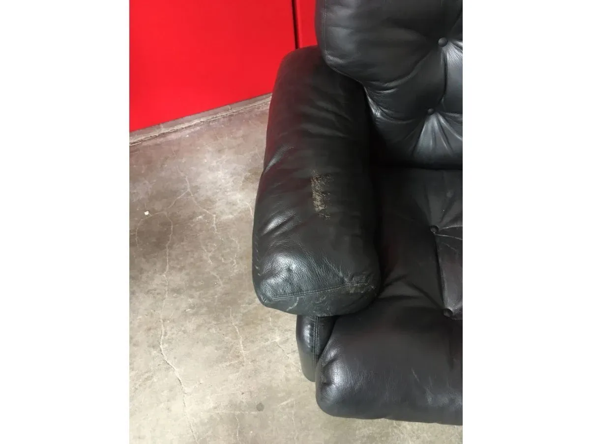 Poltrona Coronado in pelle nera, B&B Italia. Presenti segni d’ usura. La poltrona Coronado ha un design senza tempo in perfetto stile vintage, la pelle di prima qualità con cui è rivestita la seduta aggiunge un valore in più alla struttura resistente e robusta. E’ un’ ottima opzione per arredare un salotto in stile retrò o un ambiente classico e moderno
